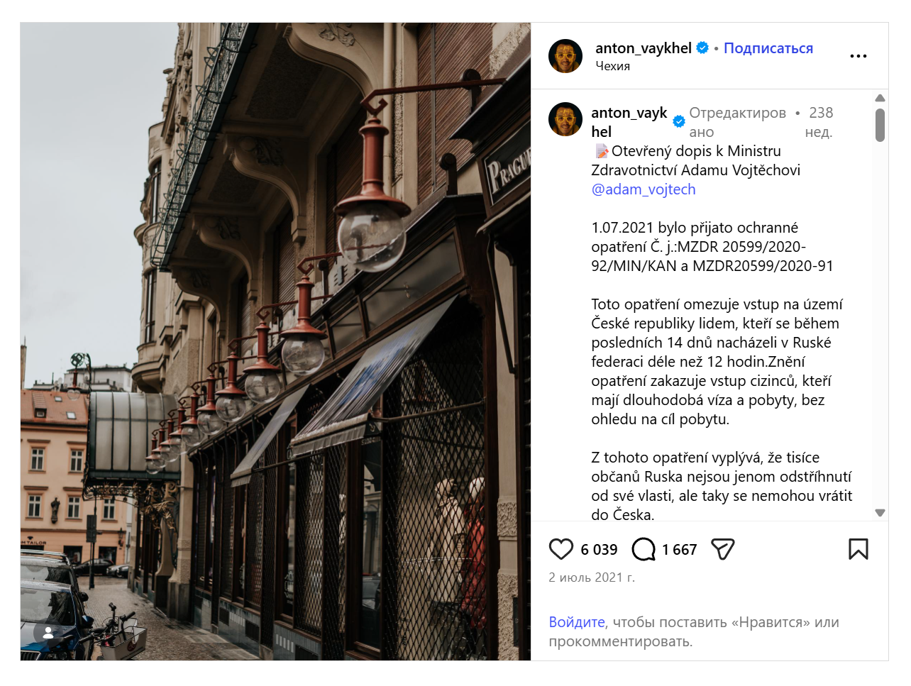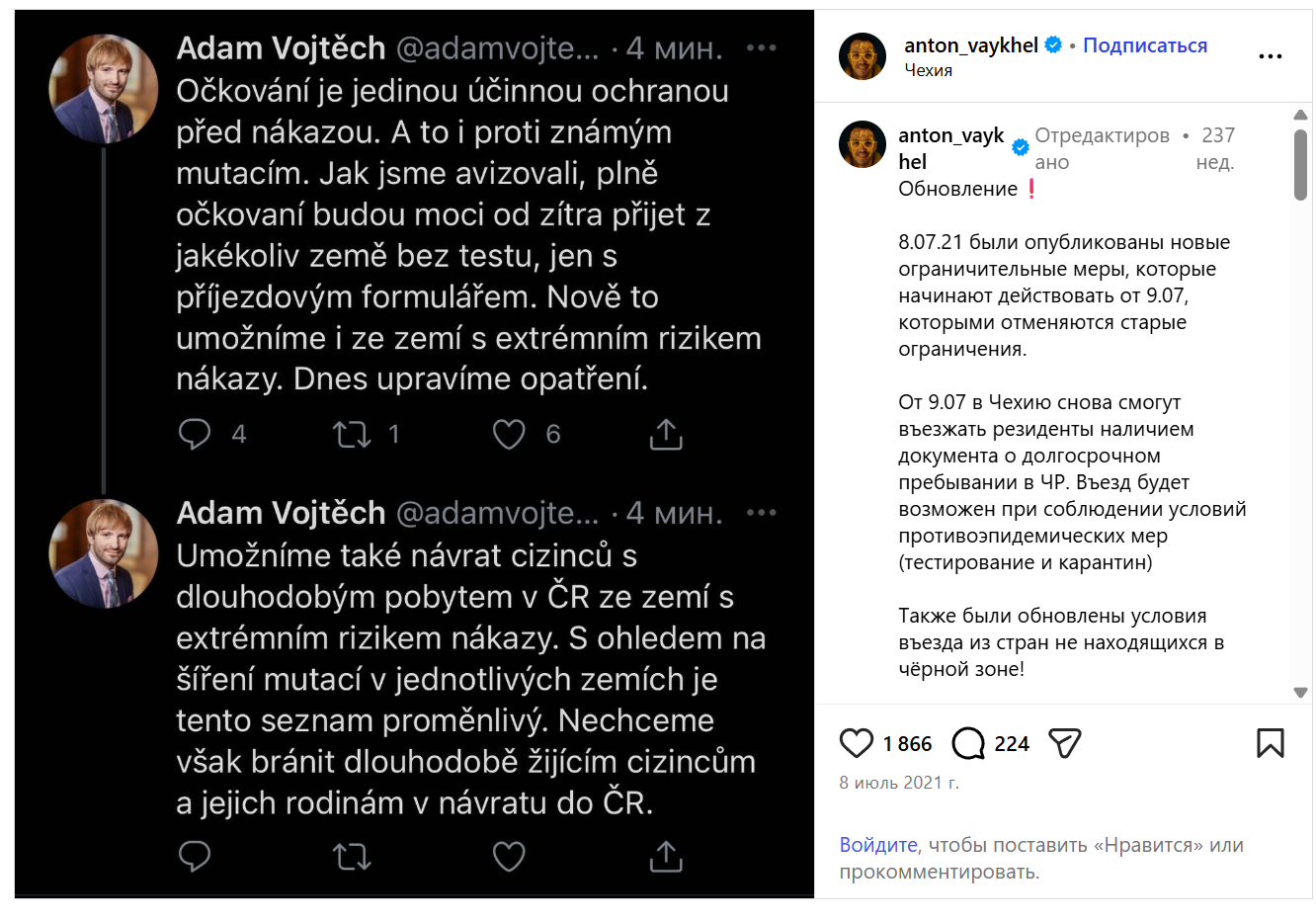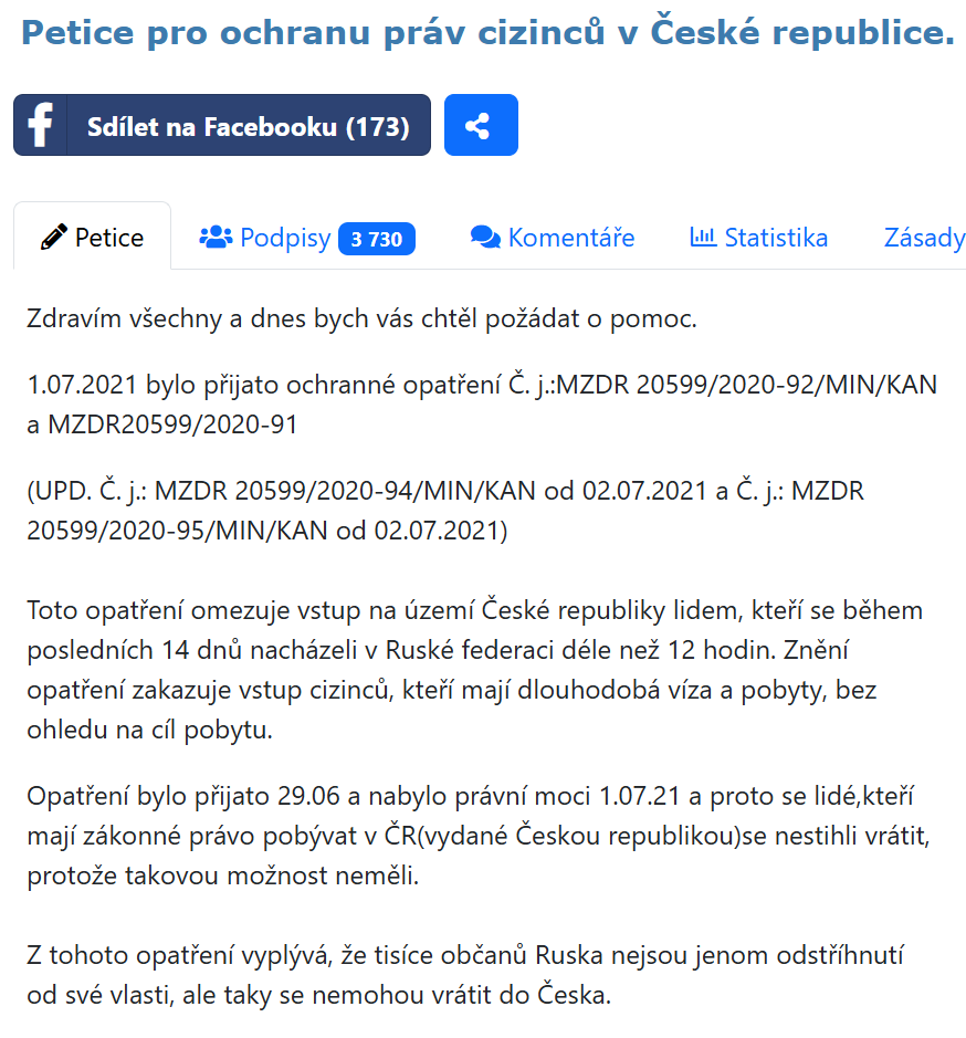 В нашей петиции мы фиксировали конкретную точку: защитные меры Минздрава Чехии (MZDR 20599/2020 …), вступившие в силу с 1 июля 2021 года.