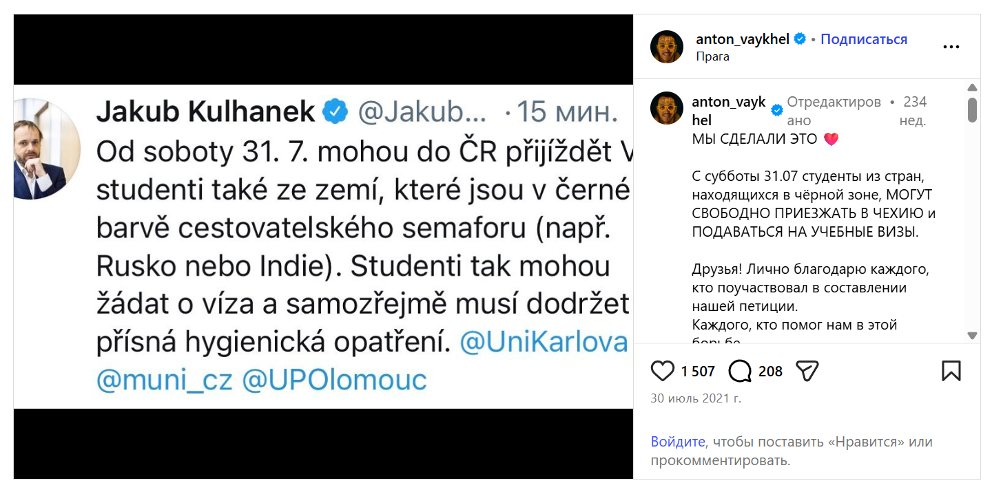 Отдельная линия - академические поездки и въезд студентов, которые физически не могли попасть на учебу из стран «extreme risk». Эта тема звучала и в международных медиа: студенты и ученые прямо говорили чешским властям, что «учеба - это essential travel», и что ограничения ломают годы подготовки и карьеры.